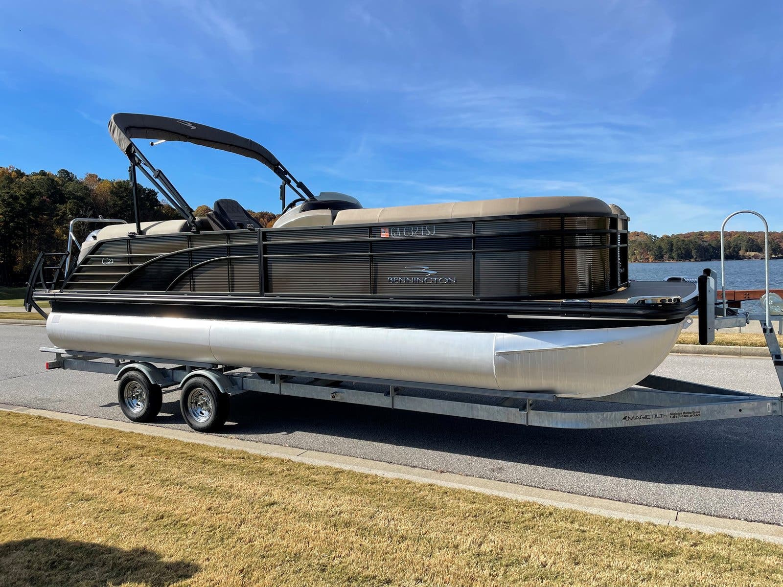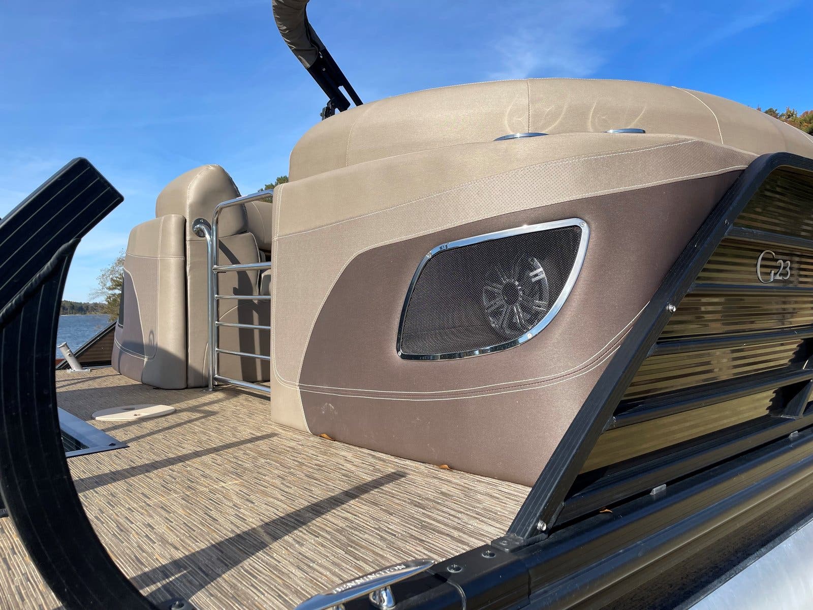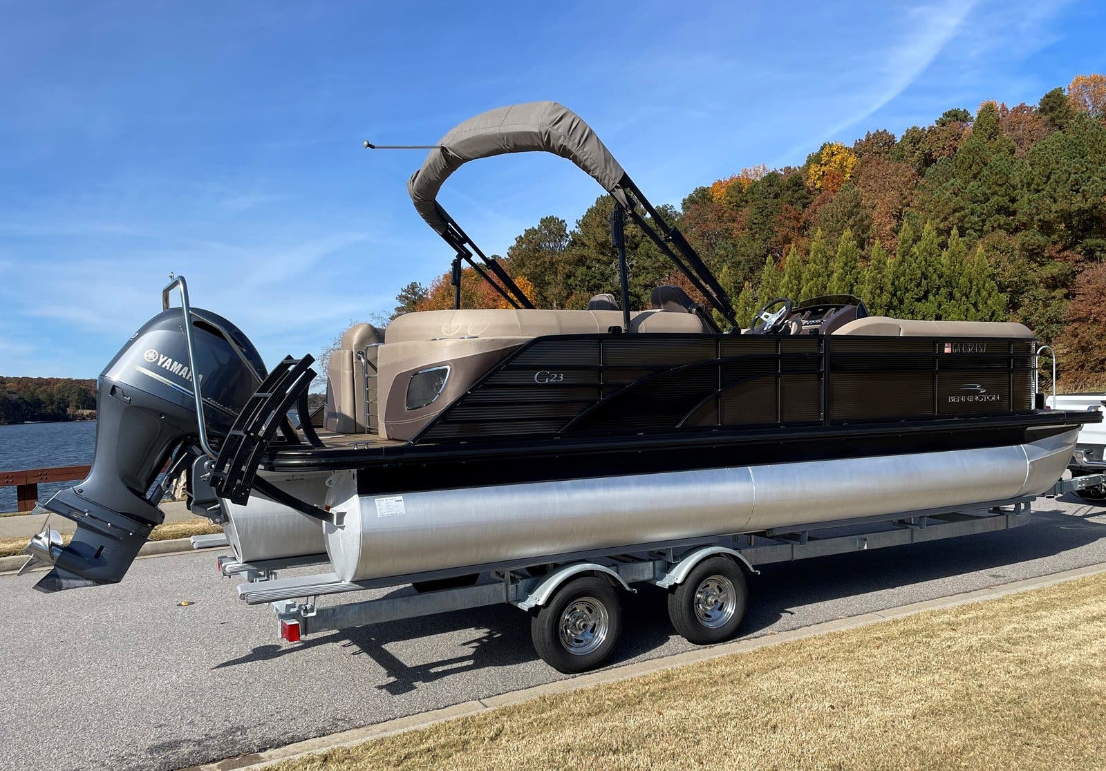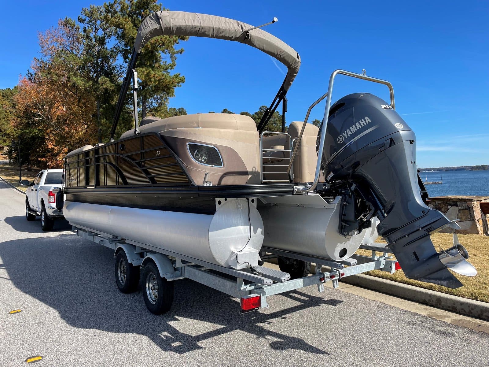 TYPE: Pontoon***DRIVE TYPE: OUTBOARD***ENGINE: YAMAHA F200XB***NUMBER OF ENGINE: S1***FUEL TYPE: Gas***HORSE POWER: 200***HULL MATERIAL: N/T***EXTERIOR COLOR: BLACK, BROWN***INTERIOR COLOR: WHITE***LENGTH: 23′***BEAM8: ′ 6″***TRAILER: INCLUDED