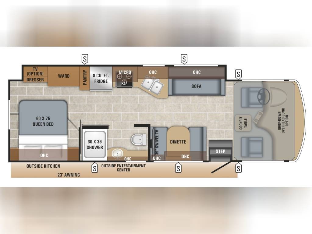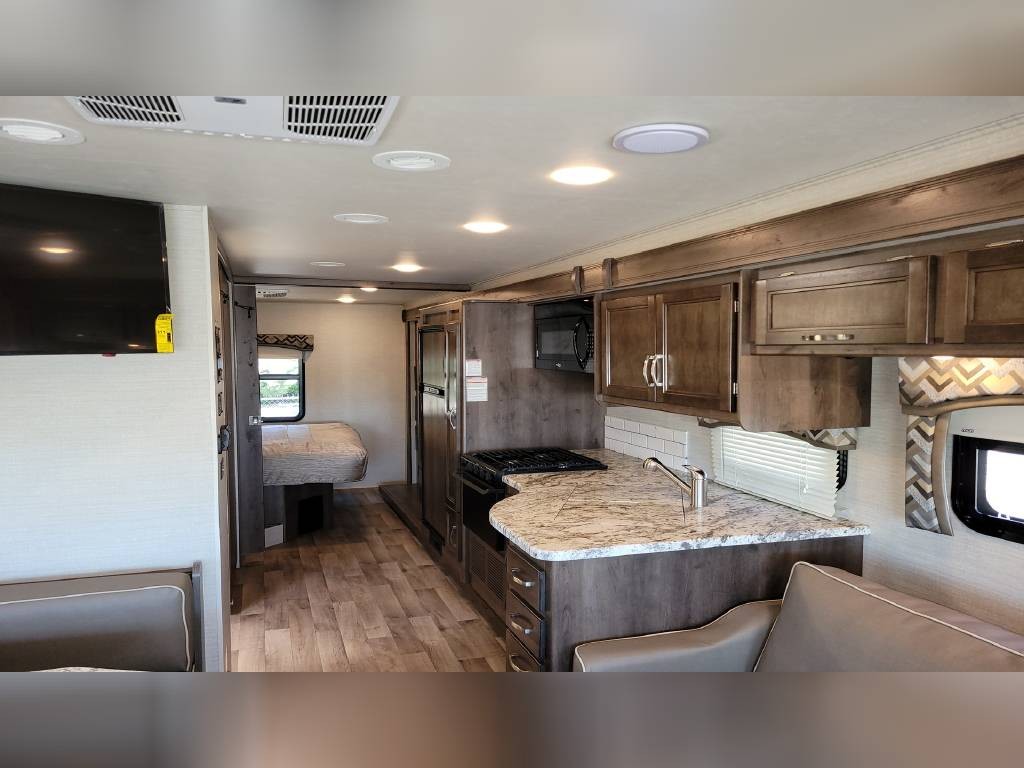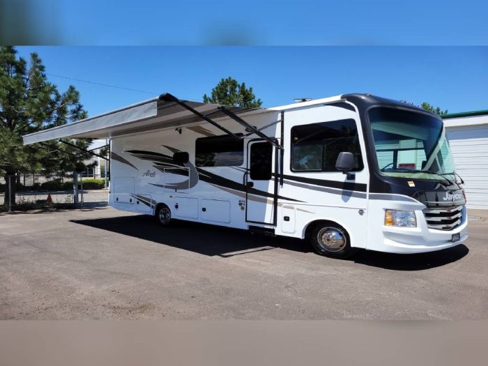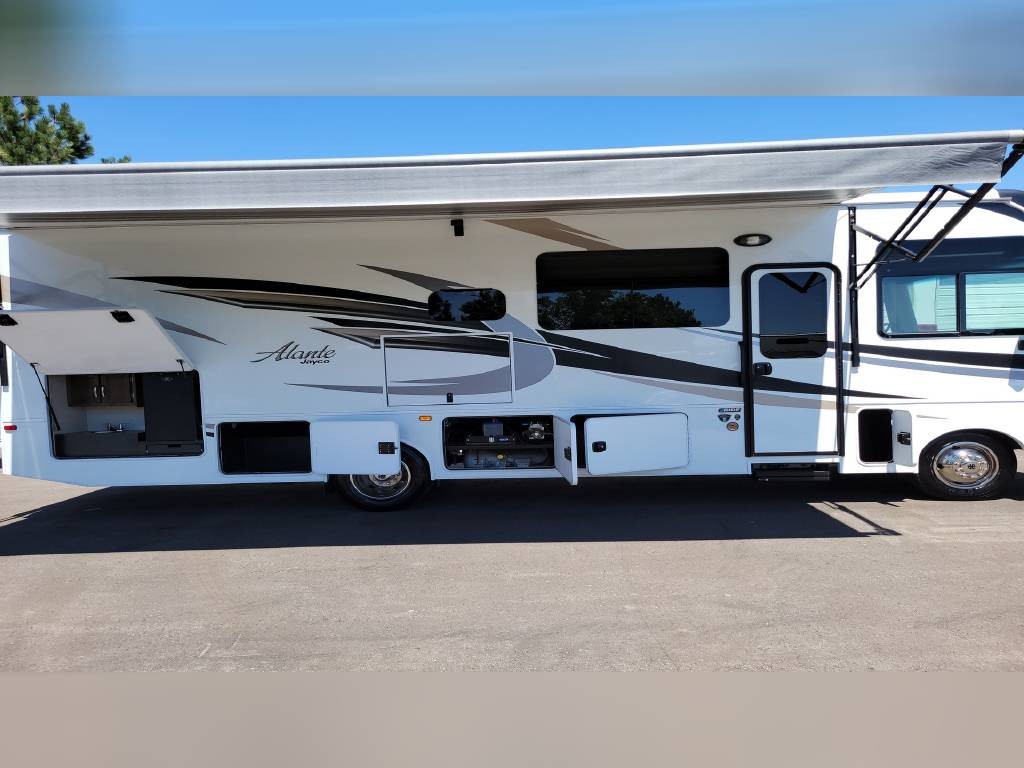 2019 Jayco Alante 29S Class A Gas RV for sale in Denver. Ford Triton V10 6.8L Fuel Injected Gas Motor w/only 1,795 Miles, Torqshift 6-Speed Automatic Transmission w/Overdrive & Ford F53 Super Duty Chassis w/Upgraded J-Ride Front & Rear Chassis Stabilizers Bars, Power Auto Leveling System, Hydraulic Front & Rear Disc Brakes, Goodyear G670 RV Tires DOT 17/18, 4K Onan Generator w/only 21 hrs., Outside Kitchen w/Sink & Refrigerator Plus Outside 32” LED Insignia Flat Screen TV w/Swivel Bracket plus Furrion Stereo & External Speakers, 23’ Power Patio Awning, Pass-Through Storage, 1,000 Watt Inverter, Power Drop Down Bunk, 5k Tow Capacity, 1-Large Drive Side Slide Out, Direct TV Stationary Satellite System w/32” Flat Screen TV Living Room w/CD & DVD Player & Back up Camera & Side Cameras Plus GPS, (2) 15K BTU Ducted AC Units & 30,000 BTU Furnace Plus 6 Gal. Water Heater, 120” Panoramic 1-Piece Windshield & 1-Piece Fiberglass Roof & 6-Way Power Driver’s Seat and Both Seats Swivel w/Middle Removable Table. 3-Burner Stove w/Oven, High Point Microwave, Large Electric/Propane 2-Door Refrigerator (No Ice Maker) & Double Stainless-Steel Sinks, Booth Dinette, Jack Knife Sleeper Sofa, Queen Bed w/Under Storage, Large Bedroom Closet w/Dresser Drawers, Roller Vinyl Window Shades, Large Shower w/Foot Flush Toilet. Exterior Length 31’4”, Exterior Height 12’5”, Internal height 7’, Fresh Water 72 Gal., Gray 49 Gal., Black 50 Gal., Fuel 80 Gal., LP 16.5 gal. RV weight w/LP & Fuel 15,446 lbs., GVWR 23,000 lbs. Non-Smoking RV & No pets.