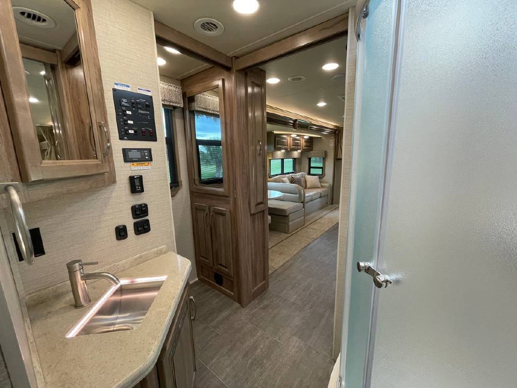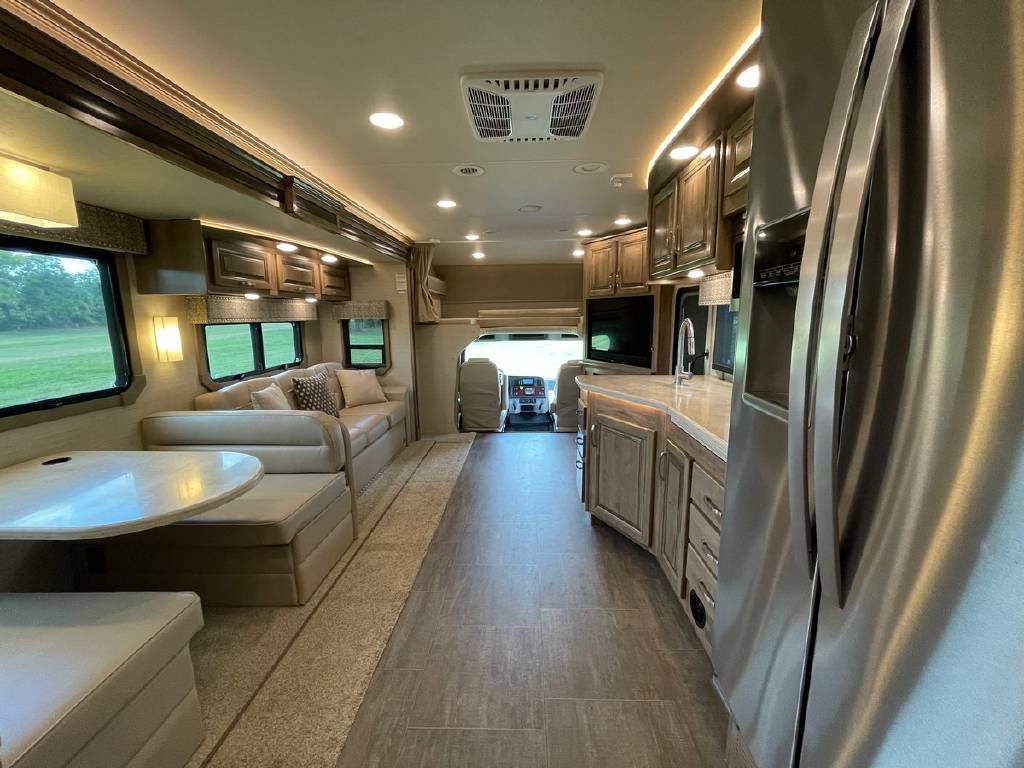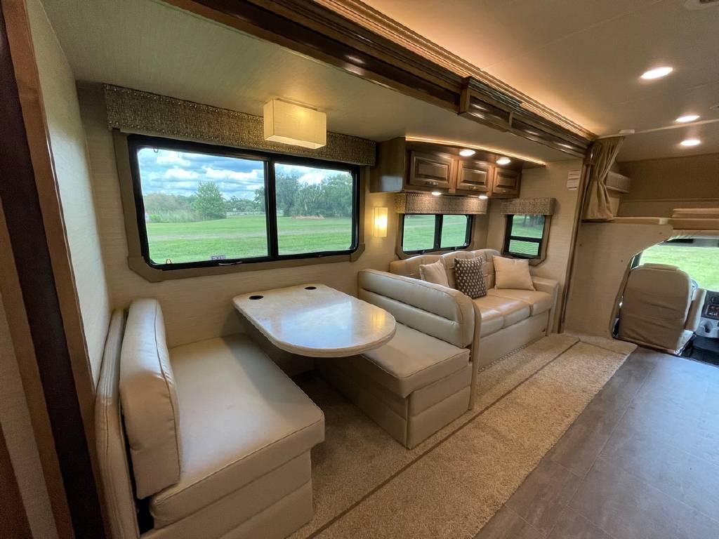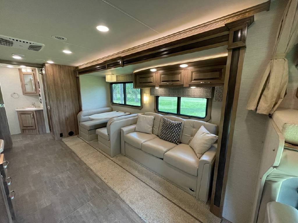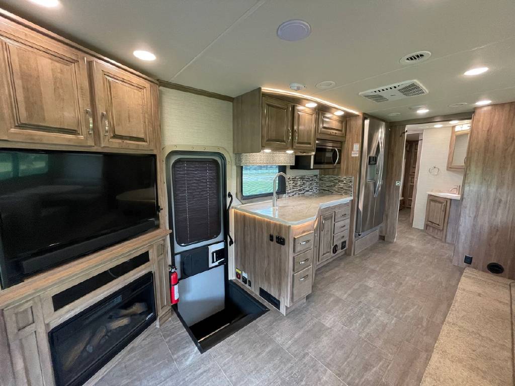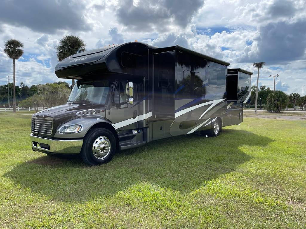 2019 Jayco Seneca 37HJ 3 slide motorhome with 13,166 miles. This coach is on a Freightliner S2RV chassis powered by a Cummins ISB 6.7L 360HP Diesel engine with Allison Transmission. This coach includes cab-over bunk, Fireplace w/ 39″ TV, Hide-A-Bed, Dinette, Residential Fridge, King Bed, Outdoor Entertainment & more !!!
