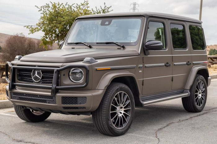 THIS… is a 2019 Mercedes-Benz G550, finished in Designo Olive Magno with a Macchiato Beige interior with Espresso Brown accents. No accidents or mileage discrepancies in this Mercedes-Benz’s past. Factory equipment on this highly-optioned G550 includes the AMG Line, Night, and Exclusive Interior Plus packages, a Burmester surround sound system, and more as detailed below. The seller reports no modifications. Mercedes-Benz gave the emblematic G-Class its first complete overhaul for the 2019 model year. Still built in Graz, Austria, the off-roader wore an evolutionary exterior design but it was entirely new beneath the sheet metal; the exterior door handles were one of the three components carried over from the old to the new G. Mercedes-Benz notably redesigned the frame and the steering system, and it stuffed more tech features into the cabin, but it kept the three locking differentials. Production continues in 2021. Power comes from a 4.0-liter twin-turbocharged V8, rated at 416 horsepower and 450 lb-ft of torque. It spins the four wheels via a 9-speed automatic transmission and a 2-speed transfer case.