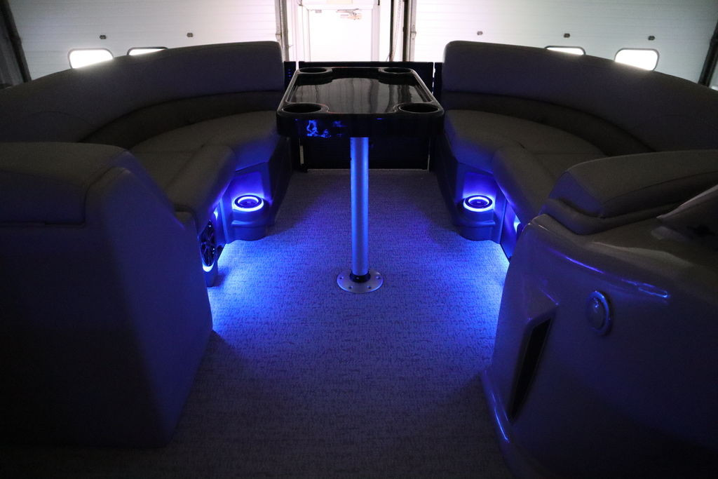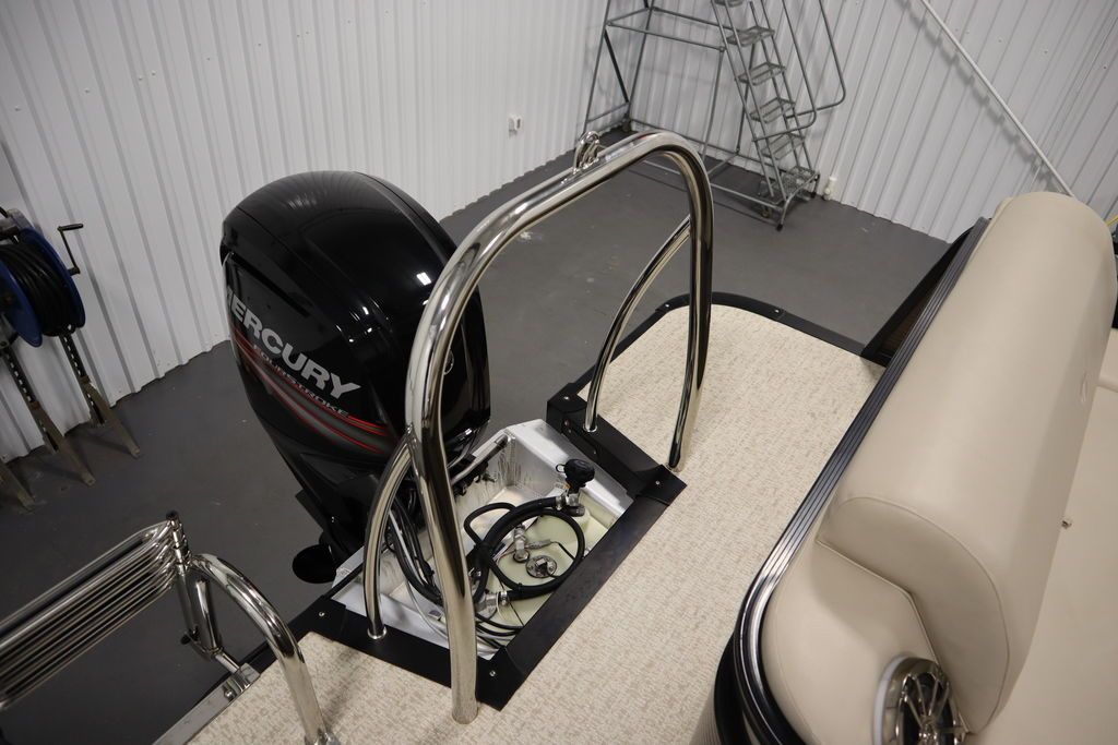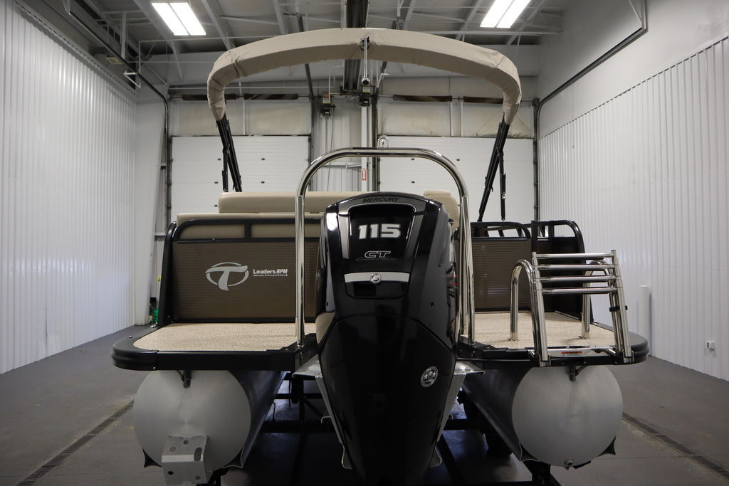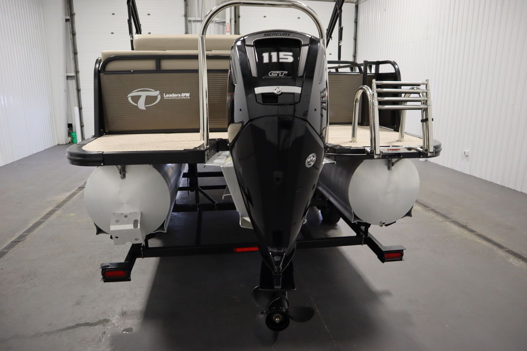 CLEAN 2019 TAHOE LTZ 2485 VRL PONTOON WITH TRAILER AND ONLY 29 ENGINE HOURS! A 115 hp Mercury Command Thrust 4-stroke EFI outboard powers this nicely equipped package.
