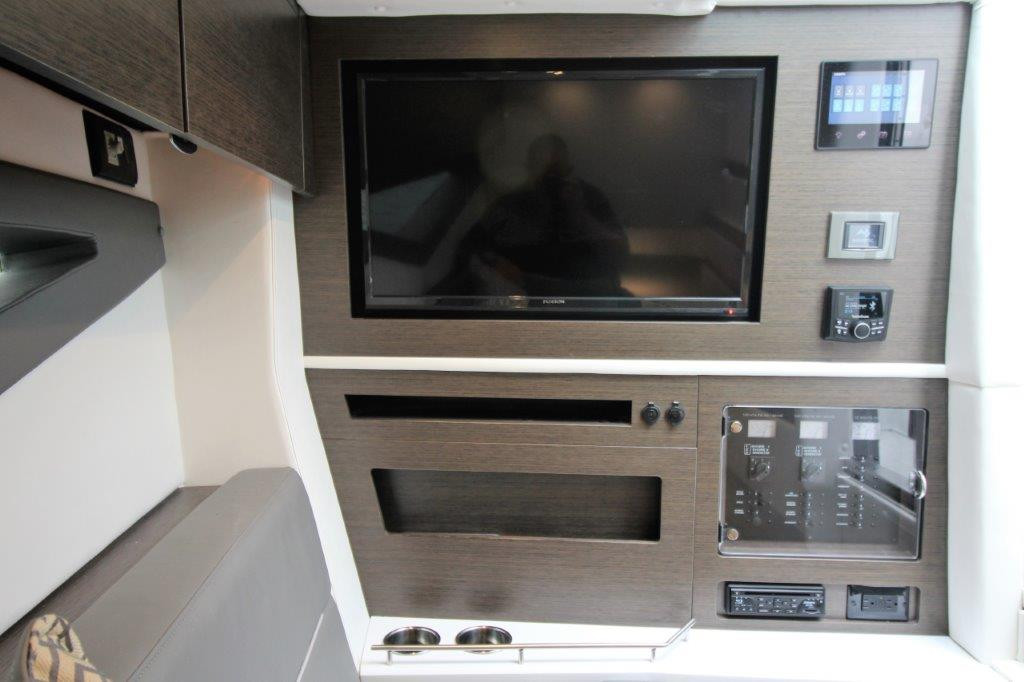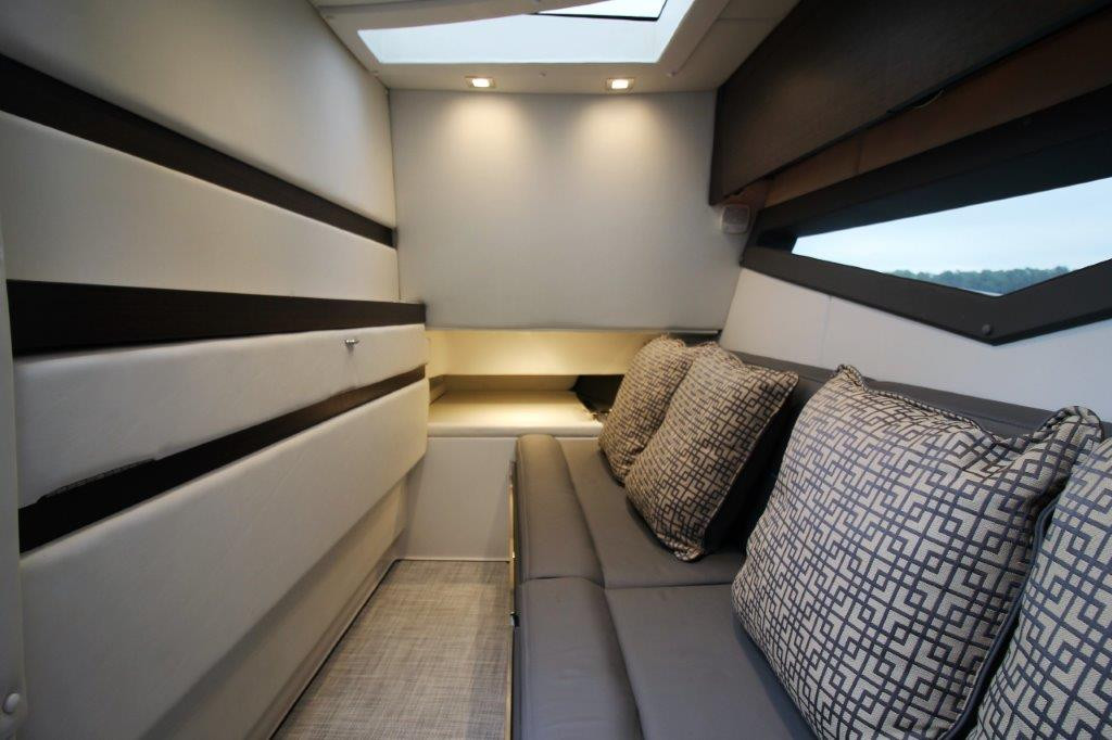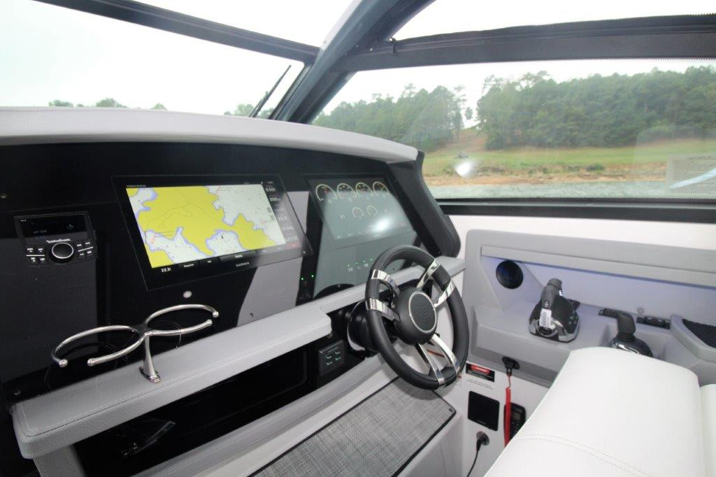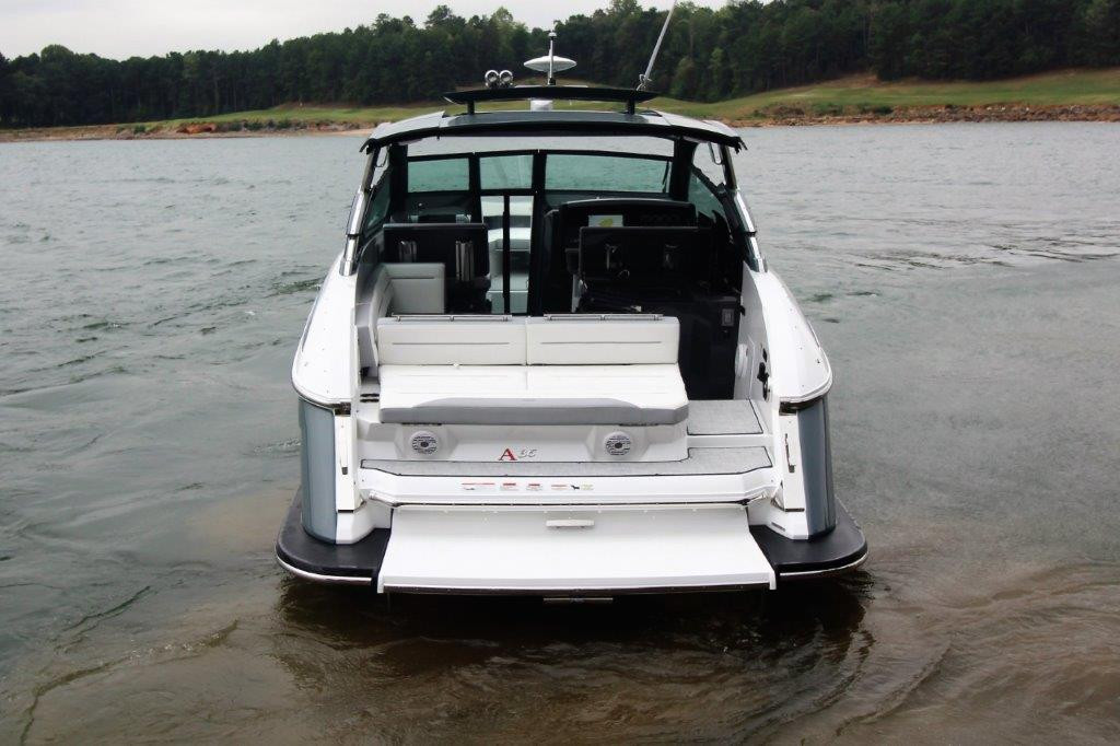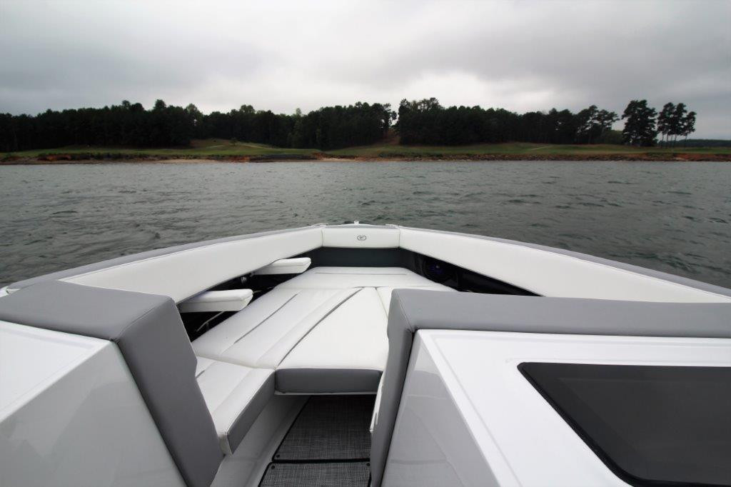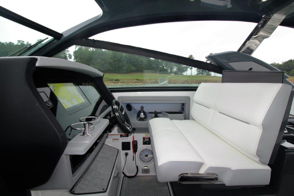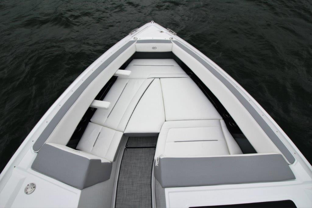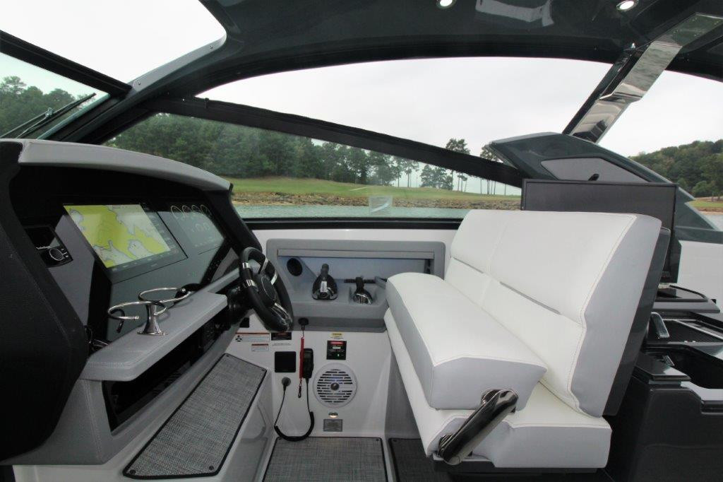With deeper, more spacious bow seating than ever before, the all new A36BR combines the coupe-top design and popular appearance of the A-Series, but adds additional seating and a more ergonomical cockpit. The A36BR maintains its high-end, roomy feel with a cabin featuring a hidden filler cushion that folds down to create a sleeping surface for two, just another way Cobalt is once again extending the luxury boating experience.