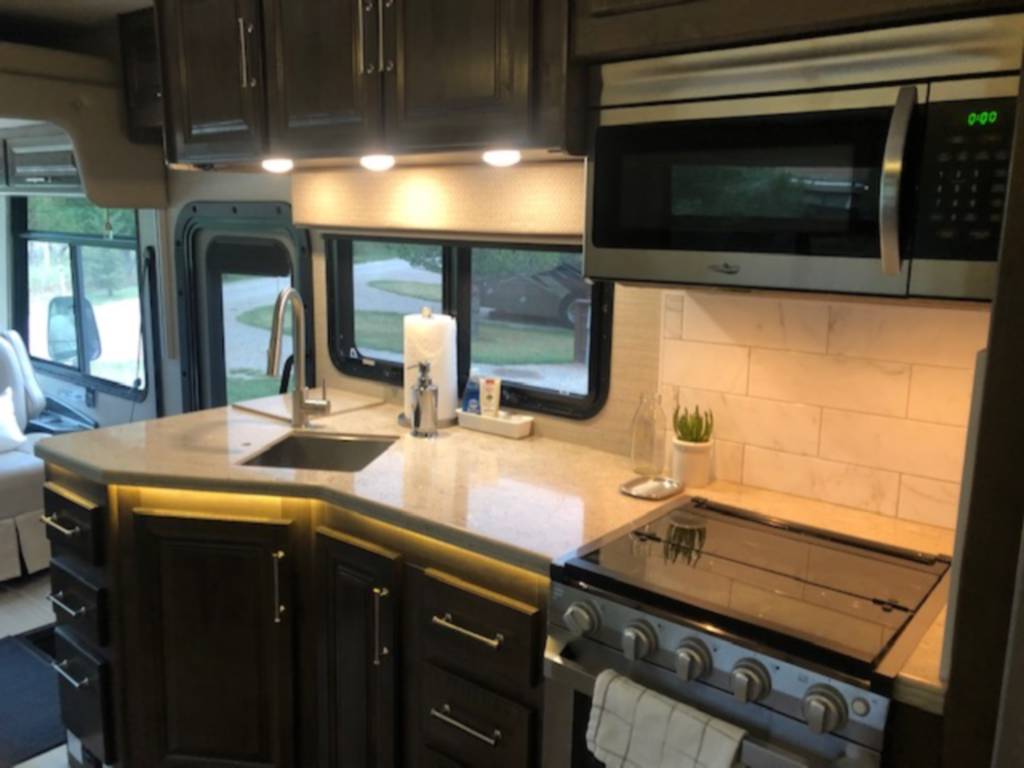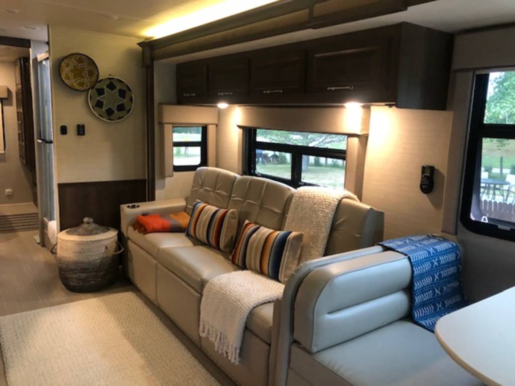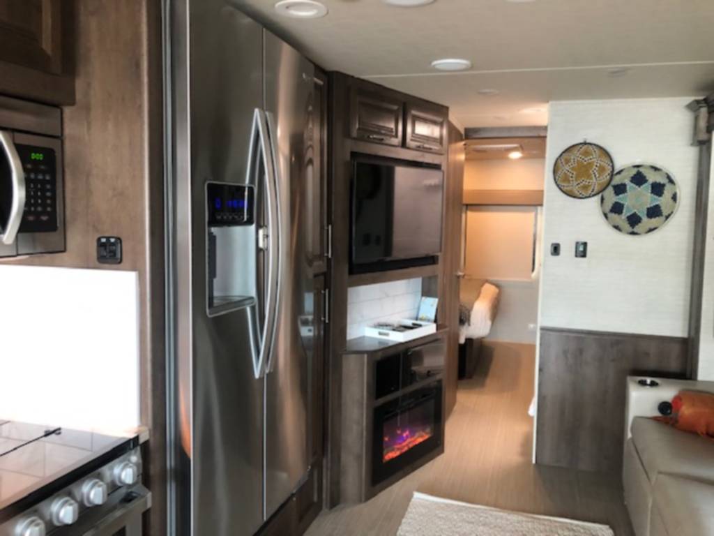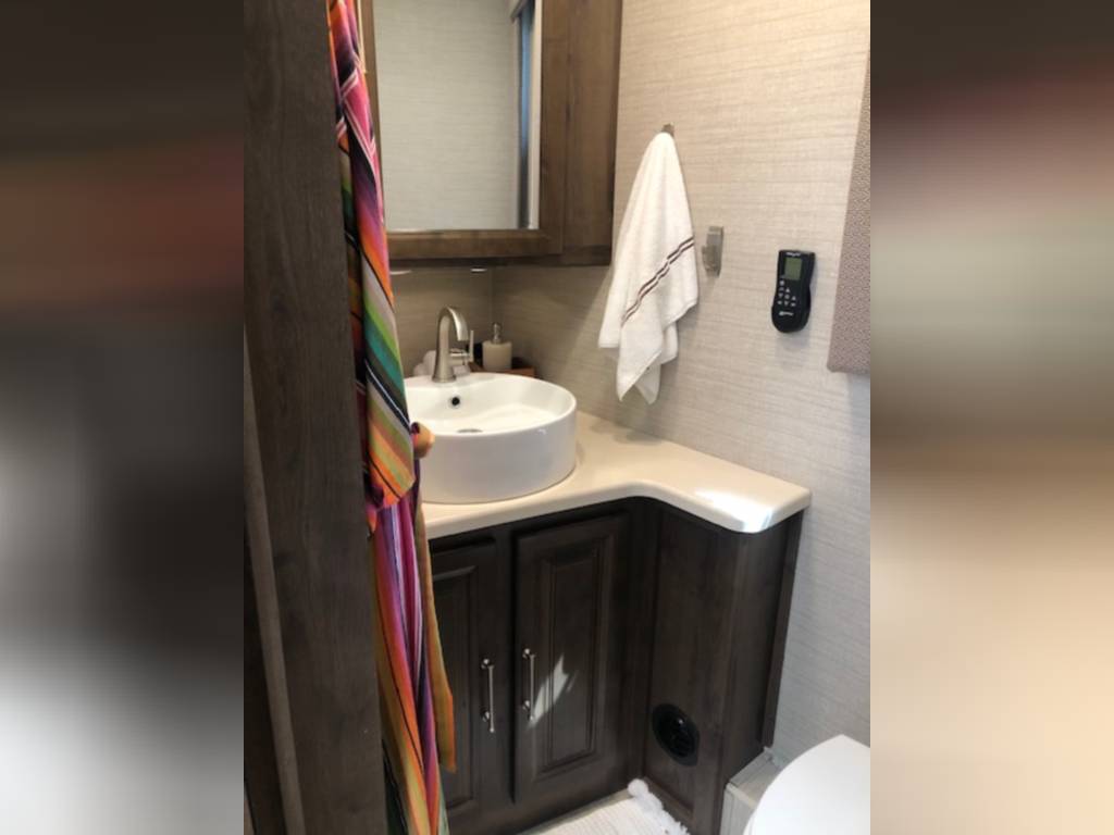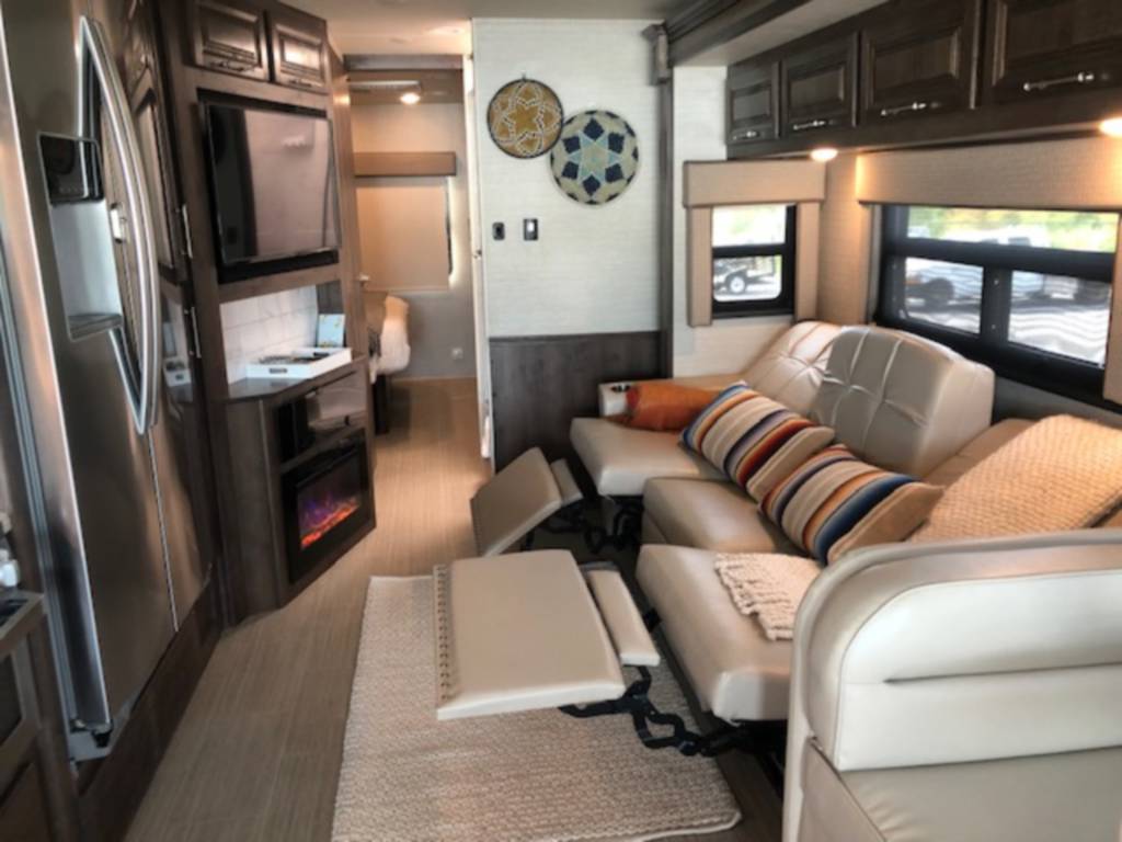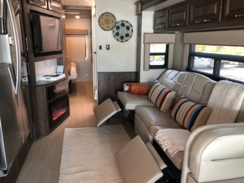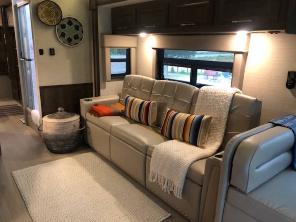 Well maintained 2020 Enterga Vision XL with optimal floorplan, 34B. The Ford V10 F53 proved to be more than enough power during our travels from coast to coast. All regular maintenance was serviced on time: oil change, tire rotation, generator oil change. The unit is immaculate and well cared for having traveled with no pets and non-smokers. Find all the regular features on the Entegra website for the Vision XL 34-B to see what this unit has to offer. In addition to the factory installed features we added – Exterior:Exterior Paint Guard to prevent Fading Magna Shades w/storage case (front, sides, wipers),Blue Ox Tow Bar, Rear Hitch, Front Stabilizer Bar, Rear Sway Bar (Roadmaster), RV Lock Digital Keylock, Snap Pads Leveler Pads, Surge Protector, Flag Pole w/ladder mount. Interior:Splendide Washer/Dryer Combo (2 yr warranty),Winegard Satellite /Direct TV receiver/3 TV’s connected, Smart TV /Living Room, Tochta King Memory Mattress/Custom Sized w/rounded corners *Fitted with custom mattress cover and Sateen Sheet Set, Residential size Bathroom Sink and Faucet, Bunk Ladder/Custom made w/additional steps & rail, Bedroom Dimmer Switch, Speakers both Coach & House speakers professionally installed for better sound, Fantastic Automatic Vents w/remotes (living & bath), Cabinet lighting.