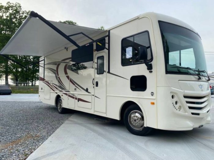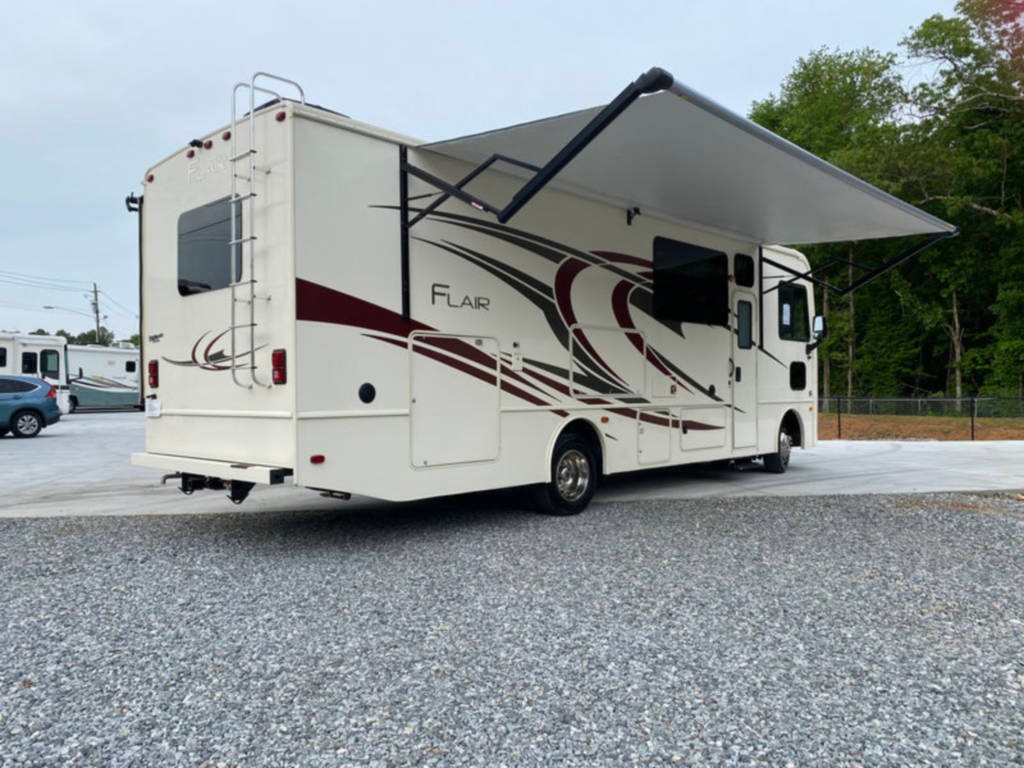 2020 Fleetwood Flair 29M, 2020 Fleetwood Flair 29M This is pretty much a brand new Fleetwood Flair, with a great full wall slide design. Allowing for a larger patio space. This is a 50amp coach with 2 roof AC units. With only 1250 miles this coach is truly like new, at a huge discounted price from a 2022… If you can get your hands on one at a reasonable mark up. Sleeps 6 with a drop down bed in the front. Outside entertainment and outside kitchen too! KING BED.