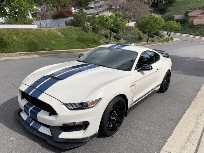 THIS… is a 2020 Ford Mustang Shelby GT350R, finished in Wimbledon White with a black interior. This Shelby features a desirable 6-speed manual transmission and the Heritage Edition Package of which only 280 units were produced. The attached Carfax history report indicates no accidents or mileage discrepancies. It also shows that this GT350R has been exclusively registered in California under a single owner. According to the window sticker provided in the photo gallery, a partial list of features includes the equipment group 920A, the GT350 Heritage Package, Technology Package, Magneride damping system, a 3.73 rear differential, independent rear suspension, launch control and “Line Lock,” and more as detailed below. Modifications reported by the seller include Ford Performance oil separators, paint protection film, Steeda rock guards, Steeda jack rails, and SLiPLo front spoiler protection. The Shelby GT350R variant of the “S550” Ford Mustang is a track-focused performance car benchmarked against competitors like the Chevrolet Camaro Z/28 and the Porsche 911 GT3. Compared to the standard GT350, it has improved grip, less weight, a more aggressive aerodynamic body kit, and it’s the first mass-produced road car to come stock with carbon fiber wheels, resulting in a highly competent muscle car for the track. Power for the Shelby GT350R comes from a flat-plane-crank “Voodoo” 5.2-liter V8 engine, rated at 526 horsepower and 429 lb-ft of torque. Output is sent to the rear wheels via a 6-speed manual transmission.