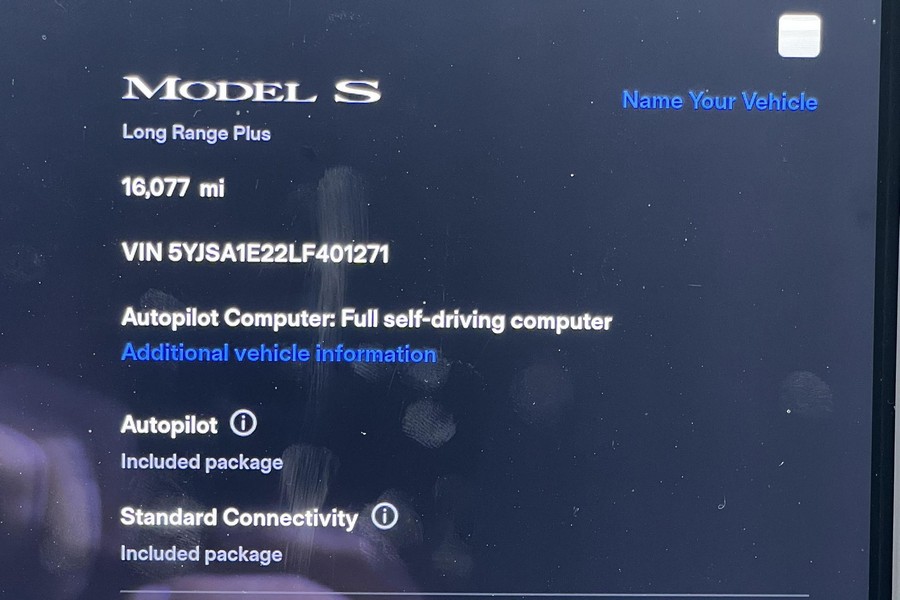 THIS… is a 2020 Tesla Model S Long Range Plus, finished in Pearl White with a black interior. It also confirms that it’s been registered in California from new. Factory equipment includes 19-inch wheels, a glass roof panel, power-adjustable heated front seats, heated rear seats, a 17-inch touchscreen display, a navigation system, and Full Self-Driving capability (subscription required). Modifications reported by the selling dealer are limited to tinted windows.