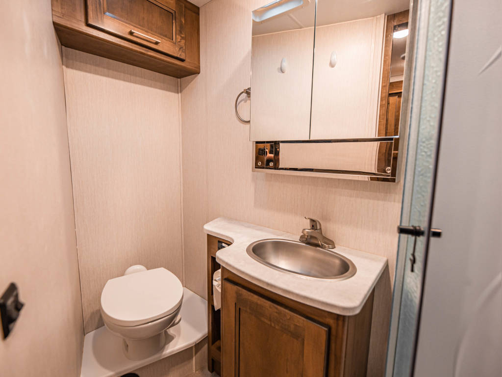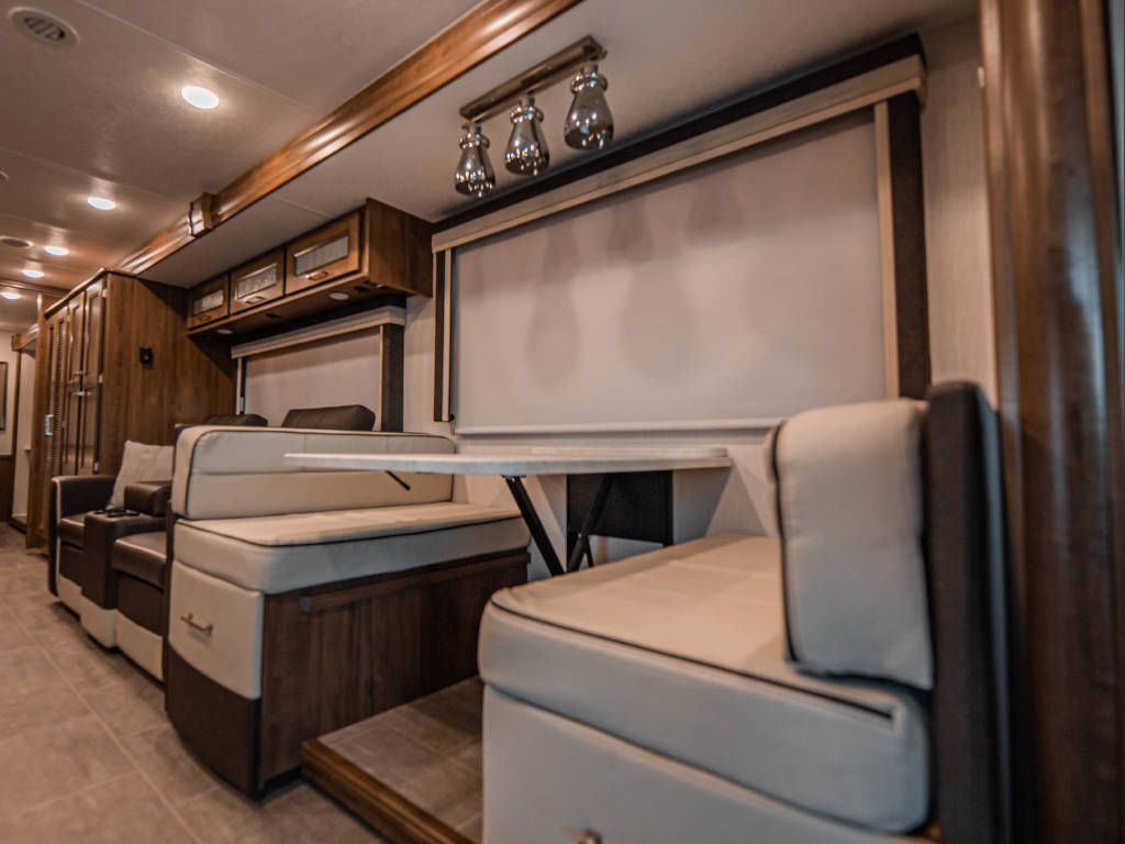 Sleep Options: Drop down bunk, king bed in bedroom, dining table
