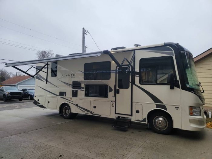 2021 Jayco Alante 27A.Only 11 hrs on generator Excellent condition, no issues. Added above and beyond factory standard: – Safe-T-Plus steering stabilizer – Electronic brake controller – Safe – Maxx-Air Bath Van Cover All warranty/maintenance done by General RV in Clarkston. All oil changes done at Suburban Ford of Waterford (has just had 2nd oil change). Highlights: – King bed in bedroom – Drop down overhead bunk – Sofa unfolds into bed – Dinette drops down into bed – TV at dinette is motorized to raise/lower – Oven & 3 burner cooktop – Full size microwave – Outdoor TV – Tons of storage inside & out – Sleeps 8 – Seatbelts for 8 – Has new 7.3L V8 Godzilla motor by Ford