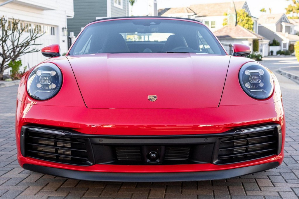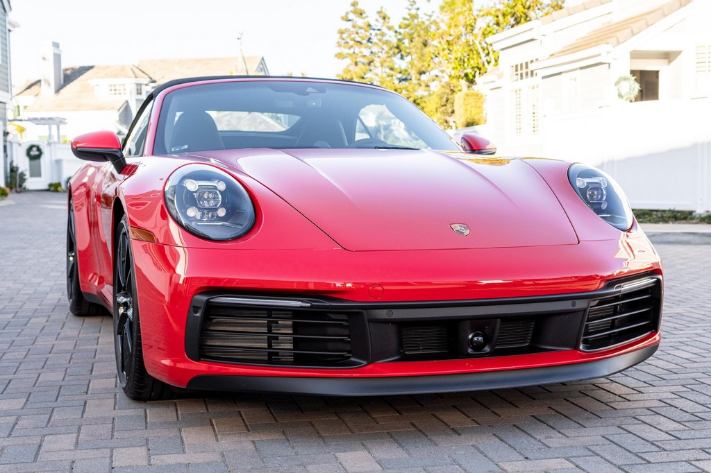 THIS… is a 2021 Porsche 911 Carrera S Cabriolet, finished in Guards Red with a black soft top, and a black interior. The attached Carfax history report lists no accidents or mileage inconsistencies. It also shows that this is a one-owner car that’s been California-owned since new. A partial list of notable equipment includes the Sport Package which features the Sport Chrono Package, a sport exhaust system, and Porsche Active Suspension Management (PASM) sport suspension. Other equipment includes 21-inch alloy wheels, 14-way power seats with memory package, a Bose sound system, Lane Change Assist (LCA), Adaptive Cruise Control (ACC), and more detailed below. Porsche released the “992” generation of the 911 for 2020. Slightly longer and wider than its predecessor, it received evolutionary design updates and much more significant changes under the body, including revised engines and an 8-speed automatic transmission. Power for this 911 comes from a twin-turbocharged 3.0-liter flat-6 engine, rated at 443 horsepower and 390 lb-ft of torque. Output is sent to the rear wheels via an 8-speed Porsche Doppelkupplung (PDK) transmission linked to a pair of shift paddles.
