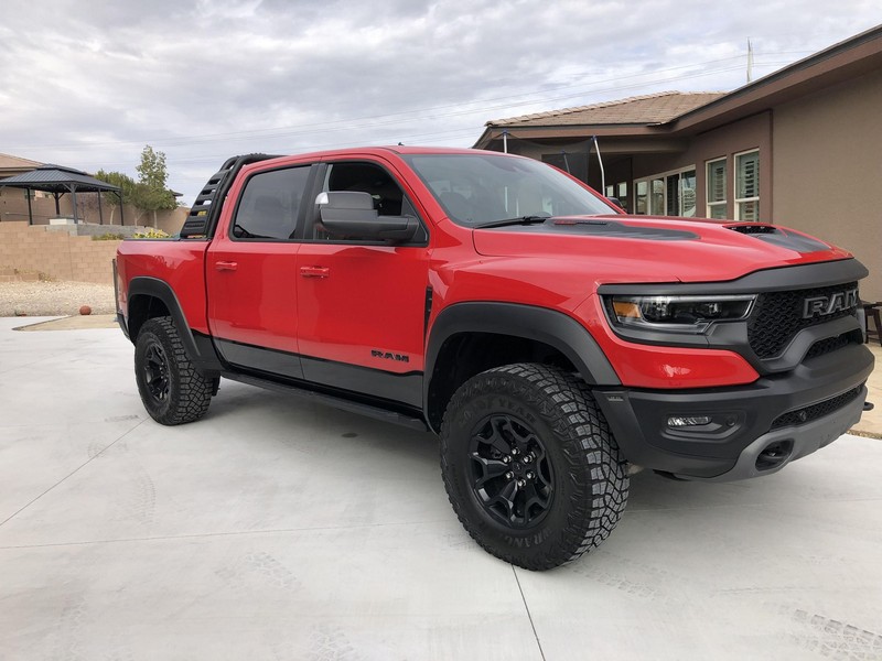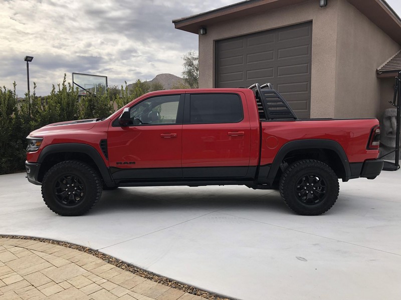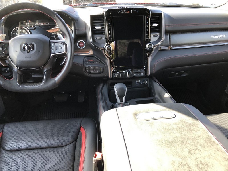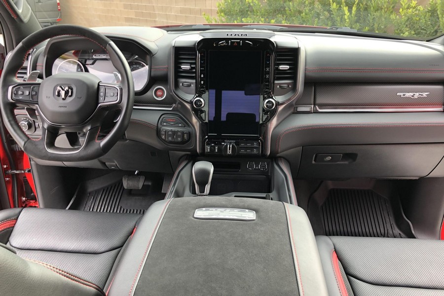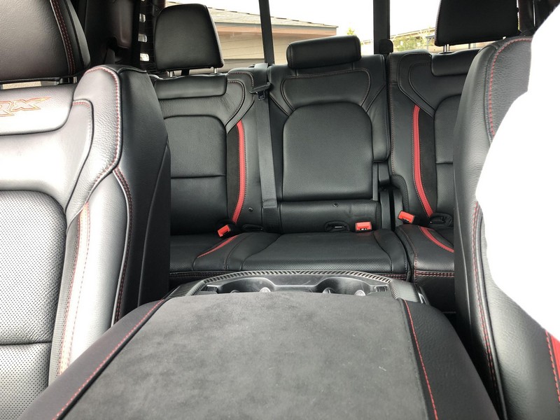 TRX Level 2 Equipment Group (leather-trimmed bucket seats, heated and ventilated front seats, heated rear seats, heated steering wheel, luxury front door trim panel, full-length premium upgraded floor console, premium wrapped instrument panel bezel, instrument panel LED ambient light piping, front and rear door accent lighting, memory driver’s seat, mirrors, pedals, and radio, power-adjustable lumbar support for the front seats, trailer brake controller, blind-spot monitoring with cross-path detection, front and rear park assist, LED box lighting, rain-sensing wipers, rear under-seat storage compartment, remote start, power tailgate, 60/40 split folding and reclining rear seats)