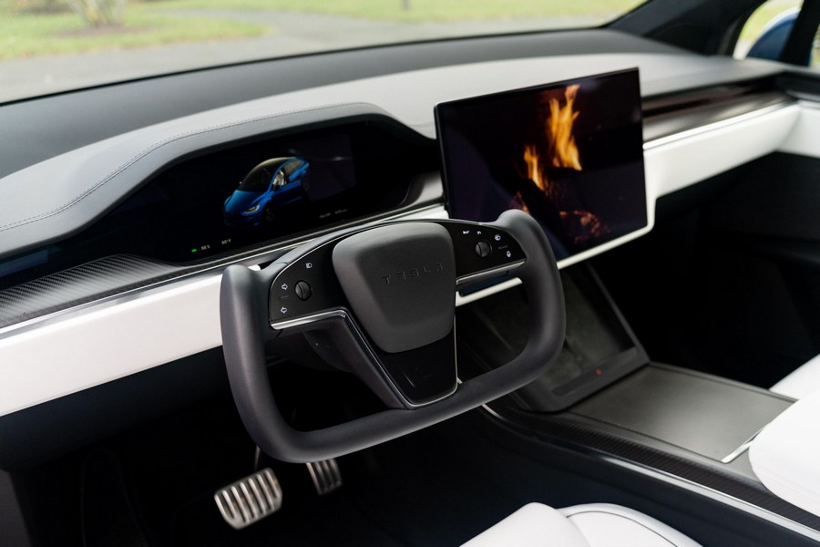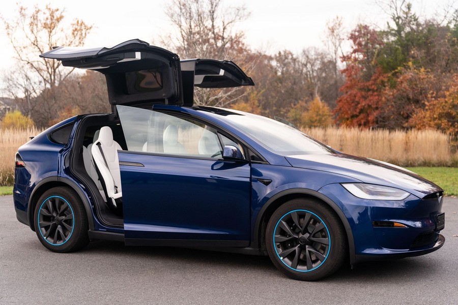 Make:Tesla Model:Model X Mileage:2,300 Engine:Triple Electric Motors Drivetrain:4WD/AWD Transmission:Automatic Body Style:SUV/Crossover Exterior Color:Deep Blue Metallic Interior Color:Black/White THIS… is a 2022 Tesla Model X Plaid, finished in Deep Blue Metallic with a black and white interior. The attached Carfax history report lists no accidents in this EV’s brief past. Factory equipment includes 20-inch “Cyberstream” wheels, a rear spoiler, carbon fiber interior trim, heated, ventilated, and power-adjustable front seats, heated second-row seats, heated and folding third-row seats, a Yoke steering wheel, a panoramic windshield, a 17-inch touchscreen for the infotainment system, and a 22-speaker sound system. Modifications reported by the seller are limited to Rimsavers on the wheels. Power comes from three electric motors, which draw electricity from a 100-kilowatt-hour lithium-ion battery pack to zap the four wheels with 1,020 horsepower. Fitted with 20-inch wheels, the Model X Plaid earned a maximum driving range rating of 333 miles from the EPA. Equipment A window sticker is pictured in the gallery, and a partial list of notable equipment includes: -20-inch “Cyberstream” wheels -LED exterior lighting -Rear spoiler -Premium interior -Carbon fiber interior trim -Heated, ventilated, and power-adjustable front seats -Heated second-row seats -Heated and folding third-row seats -Yoke steering wheel -12.3-inch digital instrument cluster -2 inductive charging pads -Panoramic windshield -17-inch touchscreen for the infotainment system -8-inch rear touchscreen -22-speaker sound system -Navigation system -Autopilot technology Modifications -Rimsavers on the wheels Recent Service History The seller states this Model X has not required service due to its low mileage. Other Items Included in Sale -2 key cards and 2 key fobs -Owner’s manual -Window sticker -Trailer hitch kit (including storage case) -Tesla-branded screen-cleaning cloth -Rubber floor and trunk mats -Charging cables and adapters