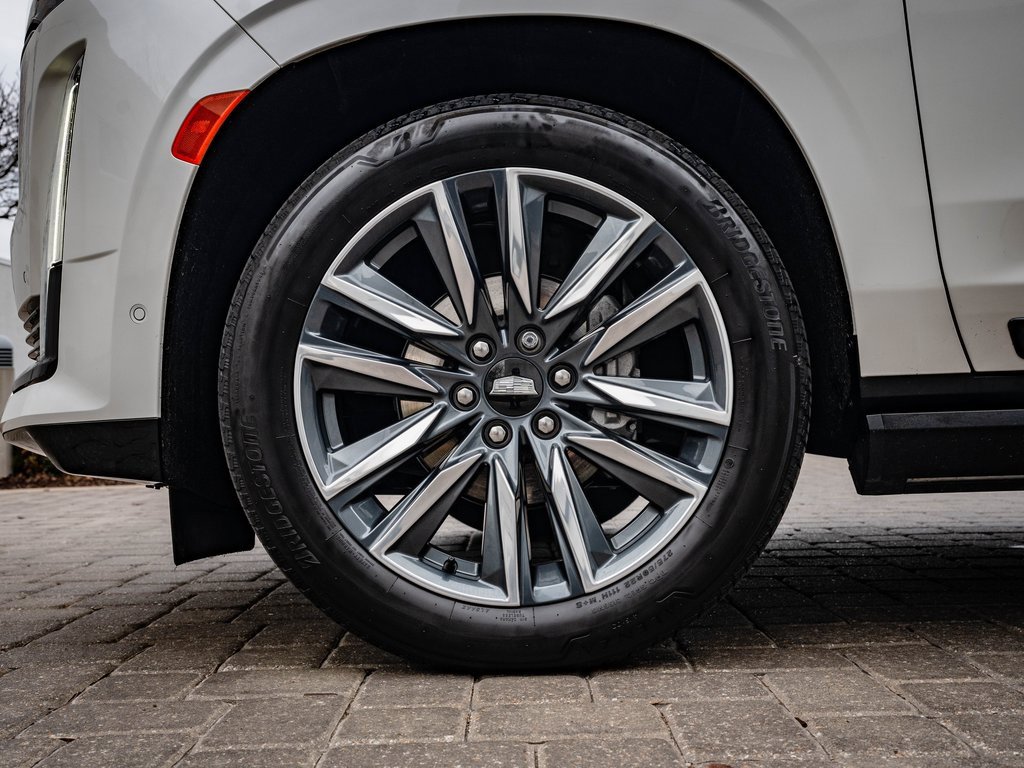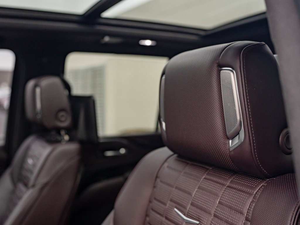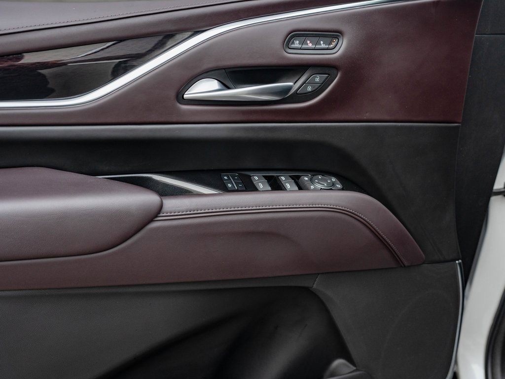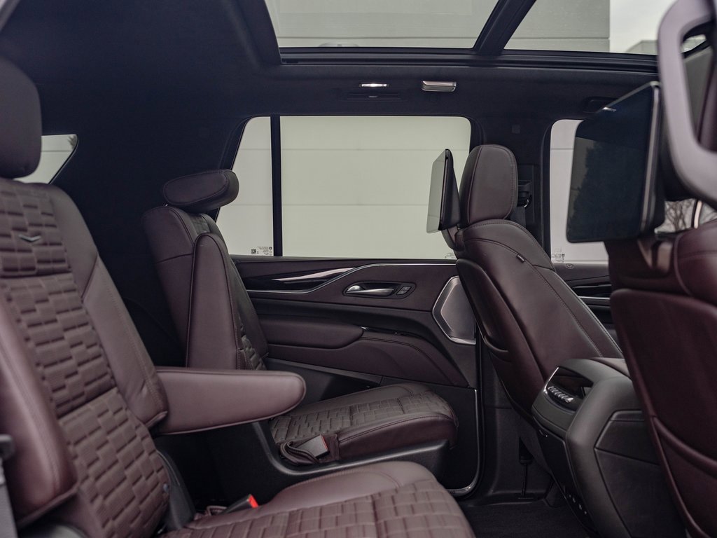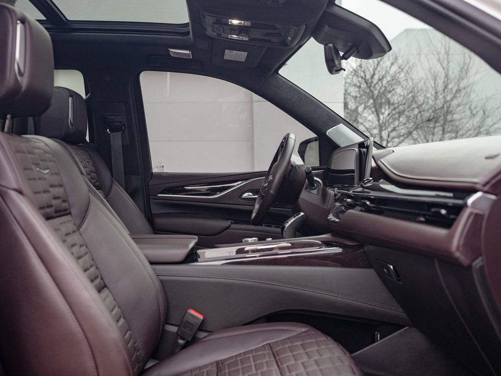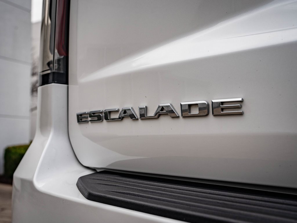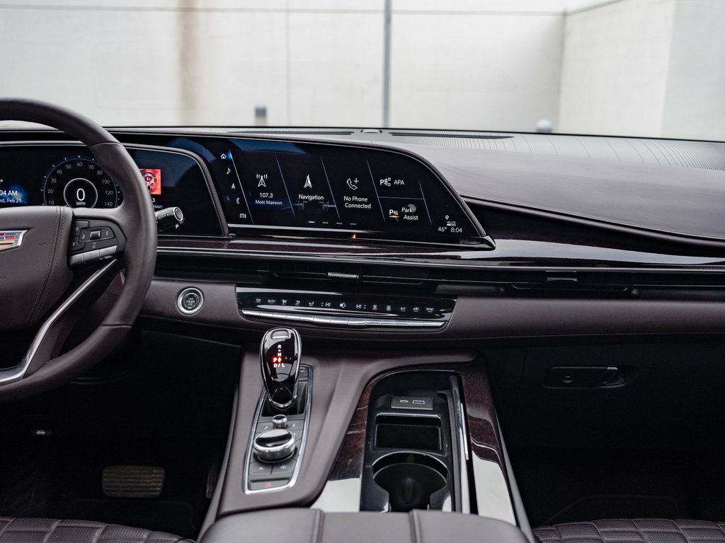 2023 Cadillac Escalade Sport Platinum, located at Jaguar Land Rover of Wichita. Original MSRP Crystal White Tricoat with Dark Auburn/Black Leather interior . This Escalade is equipped with the Driver Assist Tech Package. Package options and additional features consist of Adaptive cruise control, Front collision warning, Rear cross traffic warning, Park assist, Navigation with Surround view camera, Head-up display, Remote start system, Apple CarPlay, Android Auto, Sunroof, Heated and Ventilated front seats, Heated steering wheel, Heated 2nd row seats, and SiriusXM (subscription required).