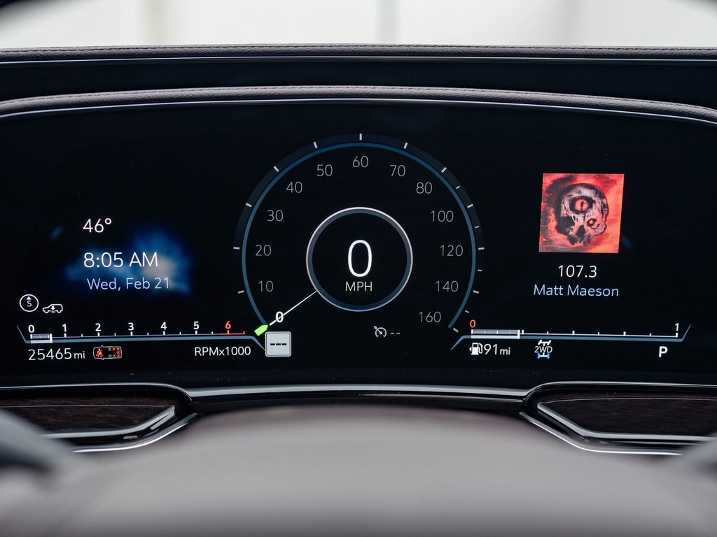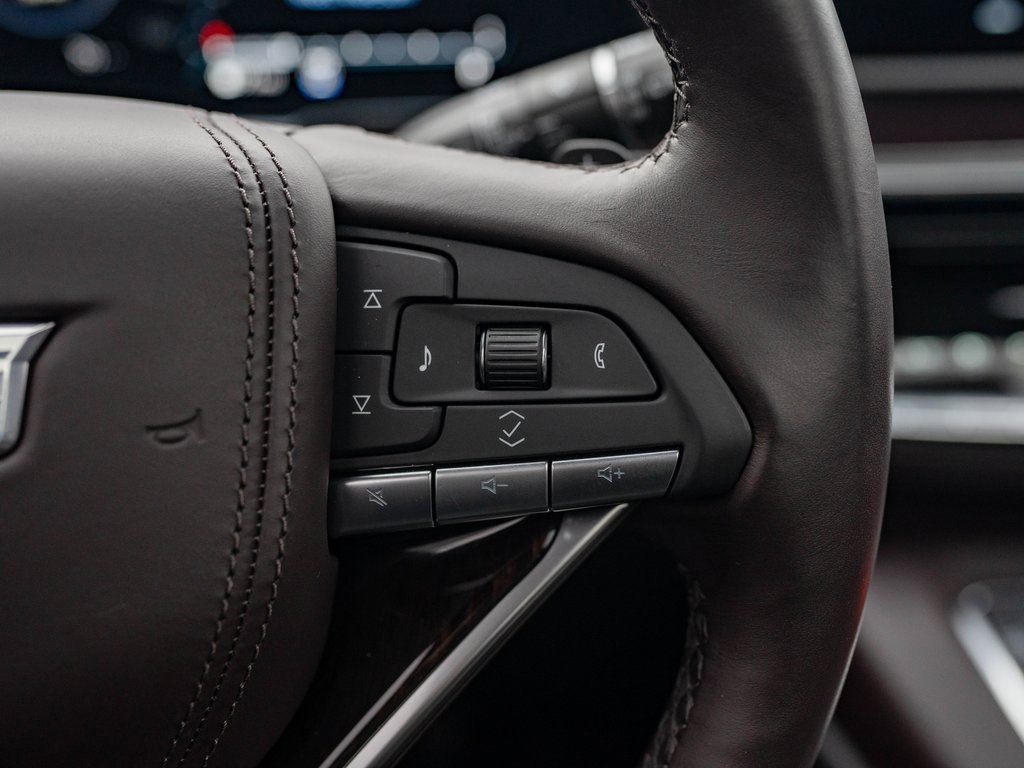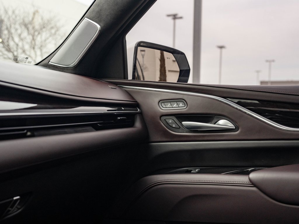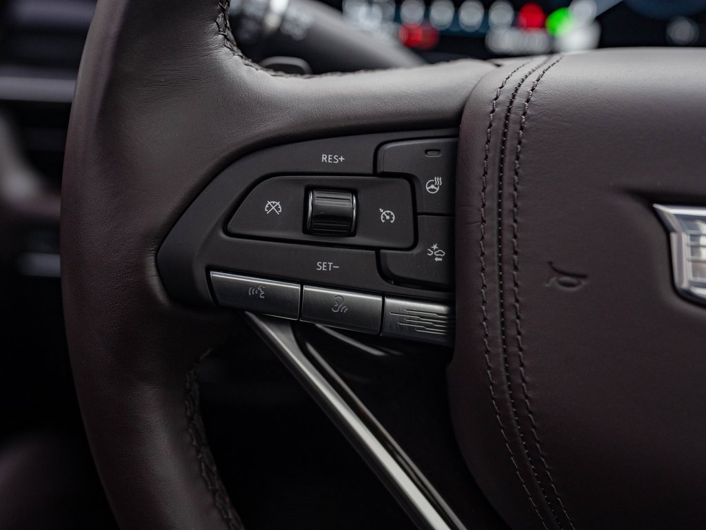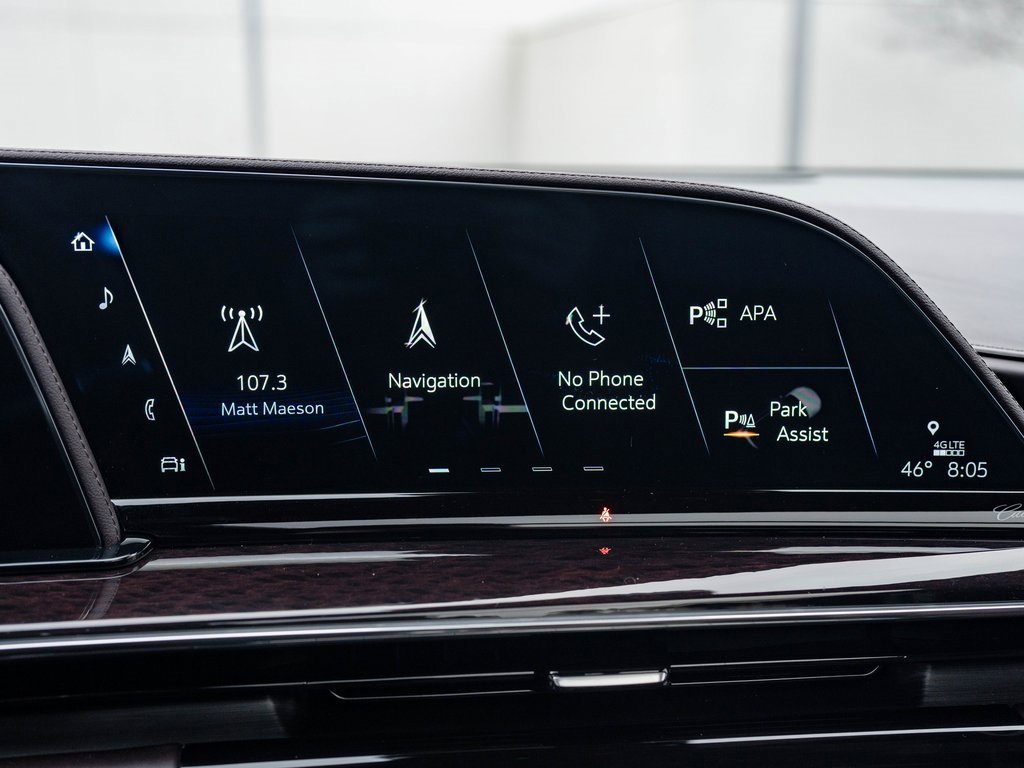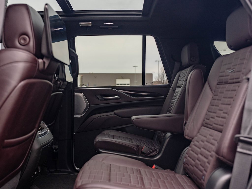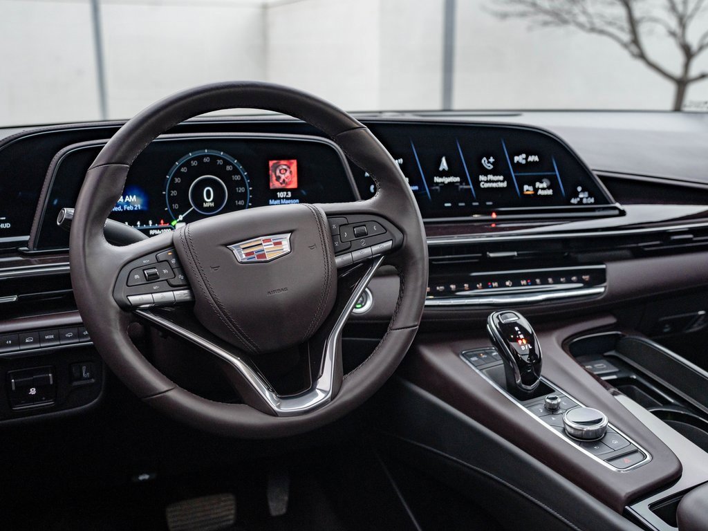 2023 Cadillac Escalade Sport Platinum, located at Jaguar Land Rover of Wichita. Original MSRP Crystal White Tricoat with Dark Auburn/Black Leather interior . This Escalade is equipped with the Driver Assist Tech Package. Package options and additional features consist of Adaptive cruise control, Front collision warning, Rear cross traffic warning, Park assist, Navigation with Surround view camera, Head-up display, Remote start system, Apple CarPlay, Android Auto, Sunroof, Heated and Ventilated front seats, Heated steering wheel, Heated 2nd row seats, and SiriusXM (subscription required).