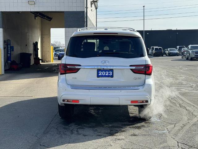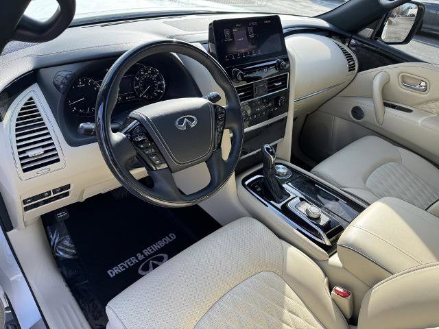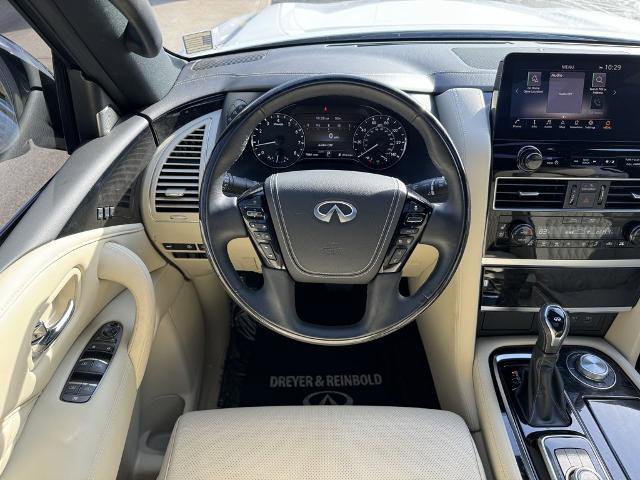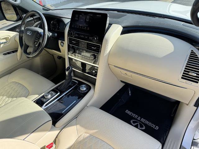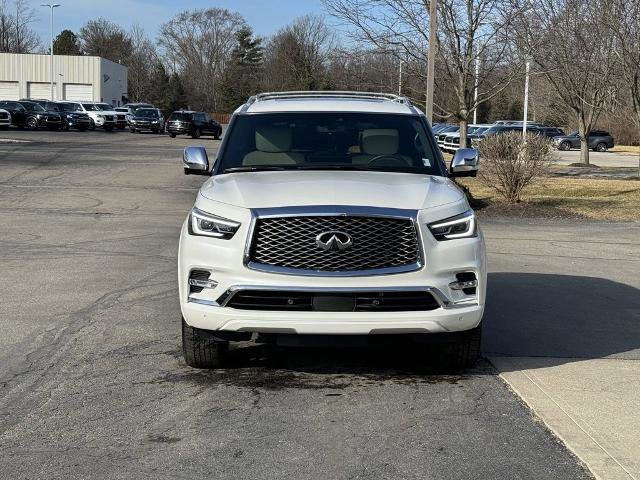 WOW. MUST SEE 7K MILE 1 OWNER 2023 INFINITI QX80 4WD SENSORY. FRESH OIL CHANGE AND IT NEEDS ABSOLUTELY NOTHING. THIS QX80 WAS AN INFINITI EXECUTIVE DRIVEN VEHICLE AND IS STILL LIKE NEW BUT WILL SAVE YOU THOUSANDS OFF THE NEW PRICE. THE MAJESTIC WHITE WITH WHEAT INTERIOR COLOR COMBO REALLY MAKES IT STAND OUT AND IT MUST BE SEEN AND DRIVEN TO APPRECIATE JUST HOW NICE IT IS. DO NOT MISS OUT ON THIS OPPORTUNITY. CHECK IT OUT TODAY. YOU WILL NOT BE DISAPPOINTED.