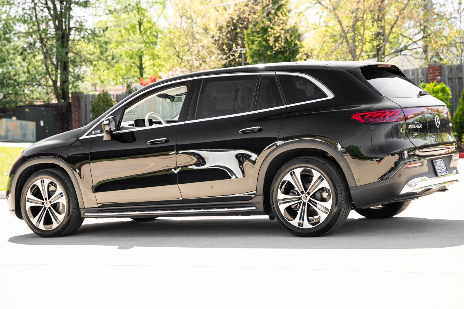 Black 2023 Mercedes-Benz EQS 450 4MATICᆴ 4MATICᆴ 1-Speed Automatic Electric Motor MSRP $115985, Aerodynamic Illuminated Running Boards, Aerodynamic Illuminated Running Boards, 15 Speakers, 4-Wheel Disc Brakes, 4-Zone Climate Control, ABS brakes, Adaptive suspension, Air Conditioning, AIR-BALANCE Package, Alloy wheels, Auto High-beam Headlights, Auto tilt-away steering wheel, Auto-dimming door mirrors, Auto-dimming Rear-View mirror, Auto-leveling suspension, Automatic temperature control, Bumpers: body-color, Delay-off headlights, Driver vanity mirror, Electronic Stability Control, Emergency communication system: eCall Emergency System, Exclusive Trim Package, Exterior Parking Camera Rear, Front Bucket Seats, Front Center Armrest, Front Door Mercedes Star-Pattern Logo Projectors, Front dual zone A/C, Garage door transmitter: HomeLink, Genuine wood door panel insert, Head restraints memory, Heated & Ventilated Power Front Seats, Heated door mirrors, Heated front seats, HVAC memory, Illuminated entry, Leather steering wheel, Leather Upholstery, Low tire pressure warning, MB Apps/Apple CarPlay/Android Auto, MBUX Front Interior Assist, Memory seat, Multicontour Front Seats w/Massage Feature, Navigation system: MBUX Augmented Reality for Navigation, Panic alarm, Power adjustable front head restraints, Power door mirrors, Power driver seat, Power Liftgate, Power moonroof: Panorama, Power passenger seat, Power windows, Premium audio system: MBUX, Premium Trim Package, Radio data system, Radio: Burmesterᆴ 3D Surround Sound System, Rain sensing wipers, Rapid Heating Front Seats, Rear window defroster, Rear window wiper, Remote keyless entry, Security system, Speed control, Speed-Sensitive Wipers, Split folding rear seat, Spoiler, Steering wheel memory, Steering wheel mounted audio controls, Tilt steering wheel, Traction control, Turn signal indicator mirrors, Variably intermittent wipers, Ventilated front seats, Wheels: 20″ x 8.5J 5-Spoke Aero w/Black Acc.